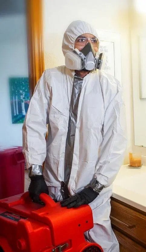 The next step is to clean and dispose of any visible blood, body fluids, and compromised porous items. We carefully follow OSHA guidelines to contain, disinfect, and dispose of all bio-matter properly in accordance with state laws to ensure the safety of everyone involved.